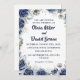 Invitation Mariage floral d'ivoire moderne bleu marine et arg