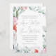 Ce faire-part de mariage floral fantaisiste présente des fleurs colorées d'aquarelle et un script de calligraphie élégant sur un arrière - plan blanc. Belle pêche douce, blanc ivoire et fleurs roses, avec de subtils feuilles verts ajoutent une douce beauté à ce design romantique. Magasinez dans ce magasin pour coordonner les éléments et les options de couleurs supplémentaires.