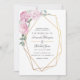 Faire-part de mariage floral chic de style pastel avec cadre géométrique doré.