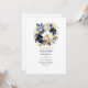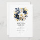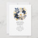 Faire-part de mariage floral marine, blanc et or. Idéal pour un mariage dans le jardin. Le code QR au verso dirige vers votre site mariage où les gens peuvent en savoir plus et rsvp.