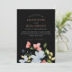 Invitations de mariage floral noir et rose simple - Design botanique élégant avec typographie de script rose. Annoncez votre mariage avec style grâce à nos invitations boho modernes présentant un mélange captivant de fleurs bleues et roses, complétées par une verdure luxuriante sur un arrière - plan noir frappant. Le design botanique élégant est accentué par l'utilisation de la typographie de script rose, ajoutant une touche de romantisme et de sophistication. Avec une esthétique minimaliste, ces invitations uniques équilibrent parfaitement modernité et beauté naturelle. Découvrez l'essence de votre journée spéciale avec cette combinaison exquise de typographie bleue, rose, verte et élégante, qui vous préparera pour une célébration inoubliable.