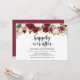 Cette carte d'invitation de réception de mariage floral rose Marsala est parfaite pour votre réception de mariage / fête de célébration. Ajoutez vos coordonnées dans une police / lettrage noir assorti.