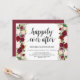 Heureux pour toujours, carte d'invitation de réception de mariage en fuite. Cette carte d'invitation sur le thème floral rose Marsala est parfaite pour votre réception de mariage / fête de célébration. Ajoutez vos coordonnées dans une police / lettrage noir assorti.