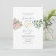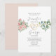 Invitation de mariage bohème élégante moderne avec cœur de corde dorée, roses aquarelles et calligraphie simple.