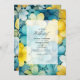 Faire-part de mariage floral turquoise et jaune et gris. Idéal pour un mariage d'été.