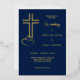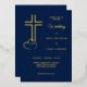 Cette belle faire-part de mariage dans votre choix d'or, argent, or rose feuille et bleu marine donne un sens de l'élégance à votre mariage! L'avant gauche a une belle croix à double ligne avec deux coeurs au pied de celle-ci. Votre texte mariage est à droite de l'image. Tout est placé sur un arrière - plan bleu marine. L'arrière de l'invitation est également bleu marine. Elégant pour toute saison !