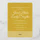 Considérez-vous le jaune comme une couleur focale pour votre mariage ? Améliorez vos invitations de mariage avec cette invitation de papier peint jaune et or doux. L'avant de la carte présente un design de fleurs simples avec le nom et la date du mariage du couple. Le dos de la carte contient les détails du mariage. Couleurs jaune et or doux. Utilisez le modèle pour personnaliser.