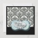 invitations de mariage formelles noir et blanc damassé, papeterie de mariage damassée vintage et faveurs de mariage noir damassé vintage.