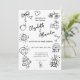 Donnez le ton de votre journée spéciale avec cette belle faire-part de mariage dessinée à la main dans un style fantaisiste d'inspiration française. Son design charmant et sophistiqué reflète une esthétique ludique mais élégante. Parfait pour les couples à la recherche d'une façon intemporelle et unique d'annoncer leur mariage, cette invitation est entièrement personnalisable pour refléter votre style personnel et votre thème, ce qui en fait l'introduction parfaite à votre célébration.