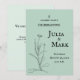 Un dessin à ligne florale simple mais élégant. Un design moderne avec une touche d'ancien monde. Couleurs arrière - plans bleu doux et vert sauge. Le texte est entièrement personnalisable, vous pouvez donc modifier tous les détails en fonction de vos besoins et préférences. Les détails RSVP sur le dos pourraient être supprimés par exemple et un RSVP de la collection "Mariage/Anniversaire Garden Party" inclus à la place.