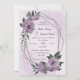 Faire-part de mariage unique avec fleurs violettes rousses romantiques et feuilles verts sur un beau cadre géométrique. POUR PLUS DE PRODUITS CORRESPONDANTS cliquez sur la collection ci-dessus ou contactez-moi.