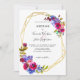 Le faire-part de mariage bleu d'or de rose de rose de Bourgogne de baie comporte des formes florales et géométriques d'aquarelle. Rayures roses de rose d'or de caractéristiques arrières.