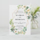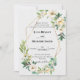 Cadre géométrique or moderne avec cartes d'invitation de mariage à la verdure de pivoine blanche pour votre occasion spéciale ! Personnalisez vos détails de mariage, date, lieu et plus encore sur le devant. Conçu pour se coordonner avec notre collection d'invitations de mariage et d'événements Géométrique | Élégant & Moderne.