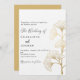 Un arrière - plan blanc décoré de simples feuilles de ginkgo doré. Personnalisez et ajoutez vos noms et les détails.
