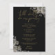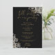 Cette élégante invitation de mariage floral de roses gothiques noires et or peut être personnalisée avec vos informations en typographie chic avec vos initiales de monogramme au verso. Conçue par Thisisnotme©