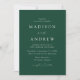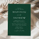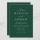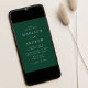 Faire-part de mariage minimaliste et moderne avec vos détails mariages en lettres blanches avec accents de script de calligraphie. L'arrière - plan vert foncé peut être changé en une couleur de votre choix. Conçu pour coordonner avec notre collection de mariages Modern Elegance.