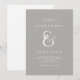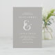 Cette invitation élégante comporte une esperluète élégante et blanche avec les fleurs illustrées à la mode sur un arrière - plan riche et gris. Art par l'intermédiaire de www.createthecut.com.