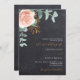 Arrière - plan de tableau de bord. Décoré d'or rose et de fleurs roses rousses, de fleurs roses et de feuilles d'eucalyptus vert aquarellés, de sprigs, de verdure et d'une fausse feuille d'or. Personnalisez et ajoutez vos noms et détails. Texte blanc et doré.