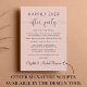 Élégant étage rose vif ou faire-part de mariage privé et réception de mariage ou invitation de fête. Sur le devant, "Happily Ever After Party" est écrit dans un mélange de typographie simple et d'un script élégant avec des swashes, et vous pouvez personnaliser votre faire-part de mariage et d'invitation et ajouter vos noms dans un script signature. Au verso, vous trouverez vos prénoms et vos dates de mariage et de réception.