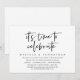 Carte d'invitation de mariage thème écriture moderne, (C'est l'heure de faire la fête). Elle est parfaite pour votre mariage intime, dîner de mariage décontracté au bord du lac, danser et faire la fête.