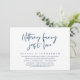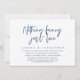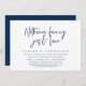 Carte d'invitation de mariage en fuite sur le thème du script bleu marine moderne (Rien de fantaisiste, juste de l'amour). Elle est parfaite pour votre dîner de mariage décontracté en bord de lac, votre danse et votre fête en fuite.