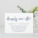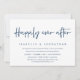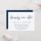 Carte d'invitation de mariage intime sur le thème bleu marine en écriture moderne (fête pour toujours heureux). Elle est parfaite pour votre dîner de mariage intime décontracté au bord du lac, la danse et la fête.