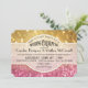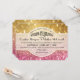 PALETTE DE COULEUR : couleur métallique dorée, COLLECTION DE DESIGN rose : Une invitation de mariage qui définira le thème de votre célébration et utilise l'option invitation Ticket Stub Corner Style. Ce design a été créé avec un délicieux teint doré à rose vif puis rose vif chatoyant, parties scintillant look Bokeh image. Moderne et tendance, style clinquant féminin, cette invitation s'inscrit dans un ensemble de faire-part de mariage simple et contemporain. Une couche demi-ronde semi-transparente avec bordure blanche a une disposition typographique de police du texte. Il a de jolies couleurs pastel douces et douces et une sensation de fille. Cool, hanche et tendance - ne manquez pas de plaire à la mariée pour son invitation et thème de la douche nuptiale.