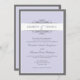 Traditionnel mais contemporain est au centre de cette belle faire-part de mariage. Le violet doux bordé de blanc et de gris fusain est à la base de cette invitation. Un panneau blanc met en valeur les noms de l'honoré, accentués par un ornement décoratif sur le dessus et le dessous. Disponible en couleurs alternatives avec des produits correspondants.