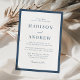 Célébrez votre jour de mariage avec cette invitation de mariage à bordure marine moderne, dotée d'un riche cadre bleu marine qui apporte de la profondeur et une sophistication intemporelle à une mise en page épurée et minimaliste. La bordure marine classique crée un contraste raffiné sur fond blanc, tandis que la typographie serif élégante et un accent de script subtil confèrent une finition soignée et discrète. Idéale pour les cérémonies formelles, les lieux traditionnels et les célébrations classiques modernes, cette invitation offre une base polyvalente qui se sent à la fois contemporaine et durable. Personnalisez le texte pour créer une invitation cohérente qui donne un ton confiant et élevé pour votre suite de papeterie de mariage.