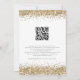 Mariage moderne avec code QR et paillettes dorées. Ajoutez votre code QR à votre site web de mariage au verso, cela en fait une option pratique pour que vos invités répondent et voient tous les détails sans avoir besoin de cartes de réponse et de détails séparées. Ou vous pouvez supprimer ceci si non requis. Un ensemble de texte manuscrit pour le mariage et le reste du texte que vous pouvez facilement personnaliser, avec une bordure de paillettes dorées sur les deux côtés.