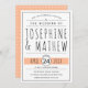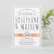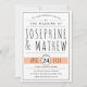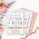 Cette élégante invitation de mariage mêle harmonieusement la typographie contemporaine noire et blanche avec une pointe de pêche. L'invitation comporte votre texte customisé en lettres noires sophistiquées contre un arrière - plan blanc, avec la date de votre mariage mise en évidence sur une bannière couleur pêche. Ajoutant une touche de charme, le fond de l'invitation présente un motif géométrique de croix blanches sur un arrière - plan pêche.