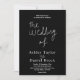Cette élégante faire-part de mariage en noir et blanc est parfaite pour un mariage moderne. le design simple présente une élégante calligraphie blanche sur un arrière - plan noir.