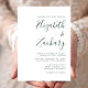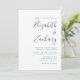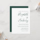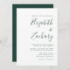 Ce faire-part de mariage moderne simple présente un texte vert émeraude sur un arrière - plan blanc. Ajoutez les noms de la mariée et du marié en calligraphie stylisée et les détails en police sans serif. L'envers est une nuance assortie de vert émeraude solide.