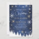 Invitation de Mariage Moderne Flocon de Neige Hiver Marine et Or.