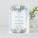 Invitation Mariage moderne Pastel Bleu Bleu Fleurs d'or Blanc