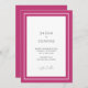 Faire-part de mariage moderne avec un design simple mais élégant avec vos détails à l'intérieur d'une double bordure. Le thème de couleur est rose vif et peut être modifié dans l'outil d'édition de conception. La couleur vive fait de cette invitation une invitation idéale pour un mariage tropical ou de plage au printemps ou en été.