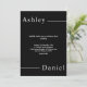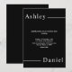Cette élégante faire-part de mariage en noir et blanc est parfaite pour un mariage moderne. le design simple présente une élégante calligraphie blanche sur un arrière - plan noir.