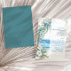 Définissez le ton d'une célébration de bord de mer chic et élégante avec notre invitation de mariage à arche florale et plage tropicale moderne. Ce design frais et contemporain présente une superbe représentation à l'aquarelle d'une vue océanique tropicale, encadrée par une arche florale luxuriante. Avec seulement la moitié de l'arche visible en arrière-plan, la composition asymétrique crée une esthétique moderne et audacieuse. Des fleurs délicates bleues et blanches avec des feuilles vertes douces améliorent l'élégance bohème de cette invitation, tandis que le texte est disposé de manière élégante sur le côté droit pour un look jeune et élégant.
