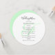 Arrondi, ou carré, modèle de menu mariage avec monogramme initial en vert menthe. Les cartes blanches ont un script noir pour le titre et du texte imprimé pour la liste du menu. Utilisez des espaces et des lettres majuscules pour les sections, ou modifiez le libellé au besoin. Le monogramme mariage du couple sera imprimé au centre derrière le libellé. Reverse correspond à la couleur vert clair.