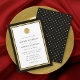 Ce monogramme classique moderne comporte une bordure en feuille d'or et un cercle à l'avant et un faux polka en feuille d'or à l'arrière. Cette invitation a également une couleur arrière - plan modifiable ; pour la changer du noir à la couleur de votre choix, cliquez sur le bouton personnaliser et modifiez la couleur arrière - plan avant et arrière. Consultez d'autres articles mariages correspondants ici https://www.zazzle.com/collections/editable_color_gold_round_monogram_wedding_1-119122458464023248?rf=238364477188679314&tc=rc . Personnalisez-le en remplaçant le texte de l'espace réservé. Pour plus d'options comme changer la police, sa taille et l'espacement entre les lettres cliquez sur le bouton "Personnaliser". *Veuillez noter que le filigrane Zazzle qui apparaît dans l'aperçu du zoom n'apparaîtra PAS sur le produit imprimé final. © Bois de rose et agrumes