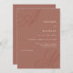 Un design minimaliste simple et moderne avec une pointe élégante, ce faire-part de mariage unique présente de beaux monogrammes de calligraphie de la mariée et du marié sur des coins alternatifs. Une mise en page de texte soignée affiche les détails de votre mariage avec un look classique propre avec un arrière - plan terre cuite et texte en ivoire avec des initiales plus légères en terre cuite calligraphie monogramme. Remplacez l'exemple de texte par vos informations. Vous pouvez déplacer vos initiales légèrement à gauche ou à droite, vers le haut ou vers le bas afin de les adapter à leur meilleur affichage dans ce format de conception. Les monogrammes sont les meilleurs lorsqu'ils se détachent légèrement des bords. Modifiez le libellé de l'invitation pour qu'il corresponde à votre style et à vos préférences personnelles.