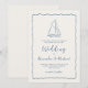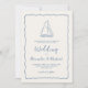 Cette invitation de mariage nautique bleu poussiéreux et ivoire est élégante avec une esthétique décontractée au bord de la mer, avec un gribouillage fantaisiste de bateau à voile dessiné à la main, une écriture manuscrite et un cadre ondulé festonné.