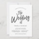 Une invitation de mariage unique avec un style d'écriture cursive dansant suivi de vos détails uniques de jour de mariage en noir et blanc.