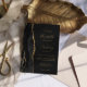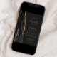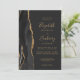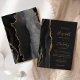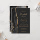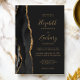 Le bord gauche de cette élégante invitation de mariage moderne présente une bordure d'agate à l'aquarelle noire rehaussée de paillettes dorées. Le texte personnalisable combine une écriture dorée, un copperplate et des polices italiques sur un fond noir décalé. Le verso présente un dessin d'agate noir et or assorti.