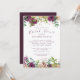 Une élégante invitation à la douche nuptiale avec bordure florale de fleurs sauvages couleur aquarelle avec des fleurs violettes, roses et jaunes et un arrière - plan bordeaux. Personnalisez avec vos détails de douches nuptiales. Cette invitation fait partie d'un ensemble, donc veuillez vérifier les autres éléments. S'il y a d'autres produits avec ce design que vous aimeriez, veuillez me contacter à lesley@ahahdodo.com