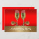 Cette invitation à thème occidentale présente des verres à champagne avec éperons sur un arrière - plan rouge et or. Le texte sur le devant indique Anniversary Party, mais il peut être modifié en utilisant le bouton personnaliser pour modifier le texte. Le côté arrière a un exemple de texte mis en place pour une fête d'anniversaire. Modifiez les détails pour s'adapter à votre fête. Vous pouvez modifier tous les champs de texte pour refléter un type de partie différent. Anniversaire, Engagement, réception ou même mariage. Cette conception est sur les autres fournitures de fête dans le magasin Rodeo Days.