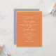 Découvrez l'élégance avec notre faire-part de mariage moderne minimaliste, délicatement ornée de teintes pastel violet, vert frais et orange soleil. Un coeur de corde or intemporel et un script simple ajoutent une touche de sophistication, promettant une célébration aussi raffinée que votre amour. Cette invitation ouvre la voie à une journée remplie de chaleur, de joie et de moments inoubliables.