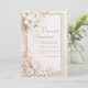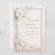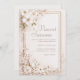 Annoncez votre mariage avec l'élégance lumineuse et rêveuse de cette invitation de mariage en forme de fleur blanche éthérée. Le design est construit sur un fond doux et clair ivoire ou rose pâle avec des lavis d'aquarelle visibles en rose subtil, crème et vert sauge pâle, donnant une base artistique et rêveuse. Un cadre rectangulaire en faux or brillant proéminent définit la zone de texte centrale, ajoutant une touche de luxe scintillant. Les coins sont richement ornés de délicates fleurs d'aquarelle, présentant de beaux bouquets de fleurs blanches et roses pâles (comme les fleurs de cerisier ou de pommier) sur des branches brunes complexes. De la poussière d'or vaporeuse et des paillettes fines sont dispersées dans le cadre et le feuillage, améliorant le scintillement sophistiqué. Le style général est romantique, opulent et classique, évoquant la beauté d'un jardin en pleine floraison, parfait pour les couples qui prévoient un beau mariage de jardin printanier, une réception sophistiquée en soirée ou tout événement mettant l'accent sur la lumière, les couleurs douces et l'élégance naturelle. Ce design est parfait pour les invitations de mariage classiques, les annonces de douche de mariée romantiques, les invitations de fête d'engagement élégantes ou la papeterie de gala printanière sophistiquée
