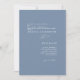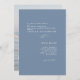 Photo du couple au dos. Invitation simple et élégante. Faire-part de mariage. Les deux parents sont mentionnés. Texte blanc. Bleu pervenche (Contactez le concepteur pour les modifications..lieux, parents, etc.)