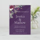 Fleurs violettes personnalisées Cette carte de faire-part de mariage personnalisable présente une typographie minimaliste à côté d'un arrangement coloré de fleurs d'aquarelle sur un arrière - plan violet profond. Pour une personnalisation plus avancée de cette conception, par exemple la modification de la disposition, de la police ou de la taille du texte, cliquez sur le bouton "PERSONNALISER" ci-dessus. Veuillez communiquer avec nous pour obtenir plus de coordination (enregistrer la date, les numéros de table, les dossiers photo, etc.) à l'adresse reviva.designs@gmail.com